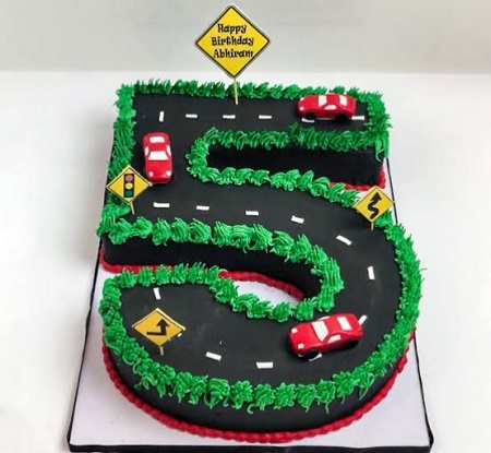 5 Number Car Racing Cake